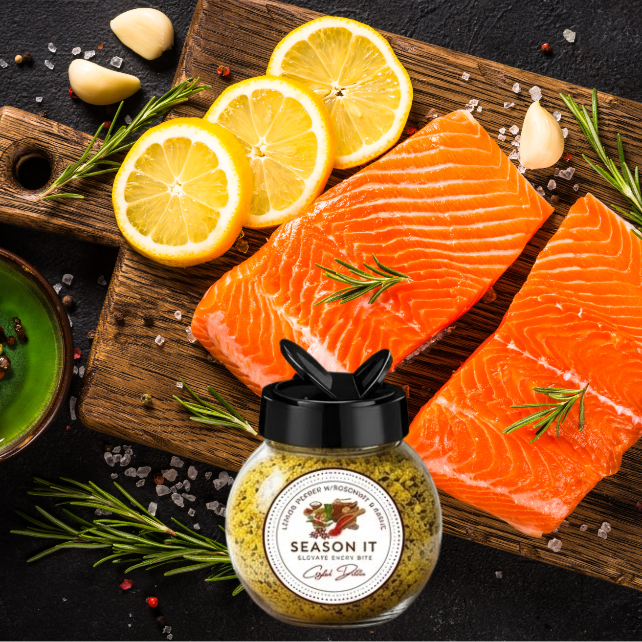 Zesty lemon pepper meets smooth buttery flavor, layered with fragrant rosemary and bold garlic. It’s fresh, savory, and perfect for turning simple meals into something special.